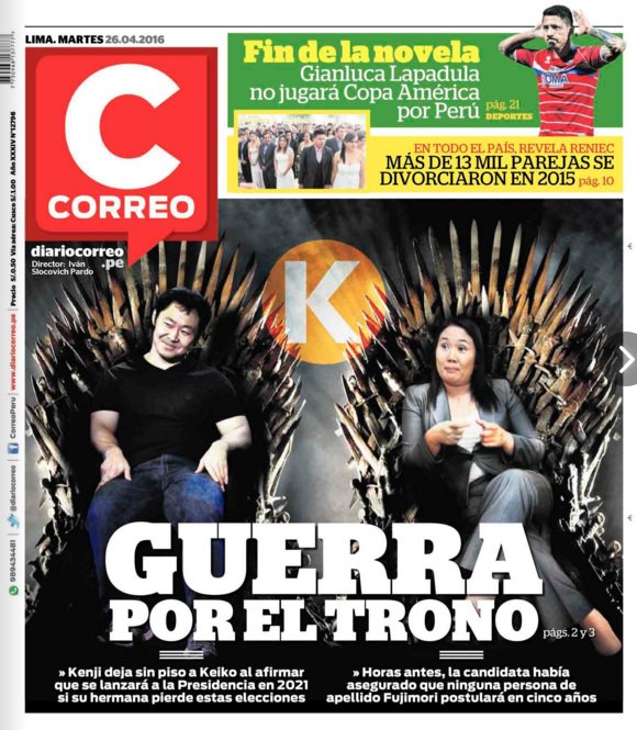 PERÚ: PORTADAS DE DIARIOS DE LIMA 26/04/2016