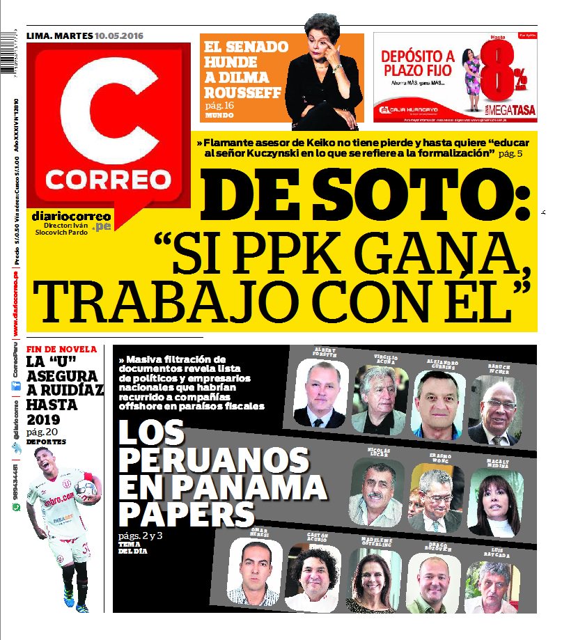 PERU: PORTADAS DE DIARIOS DE LIMA 10/05/2016