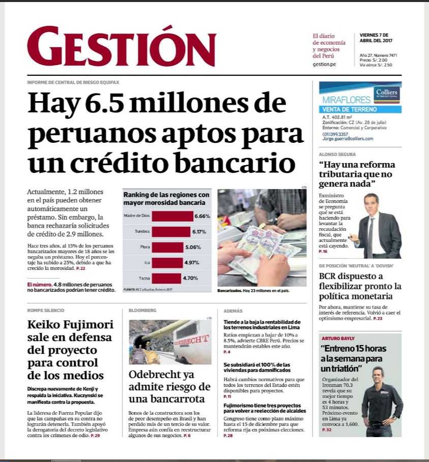HAY 6.5 MILLONES DE PERUANOS PARA UN CRÉDITO BANCARIO